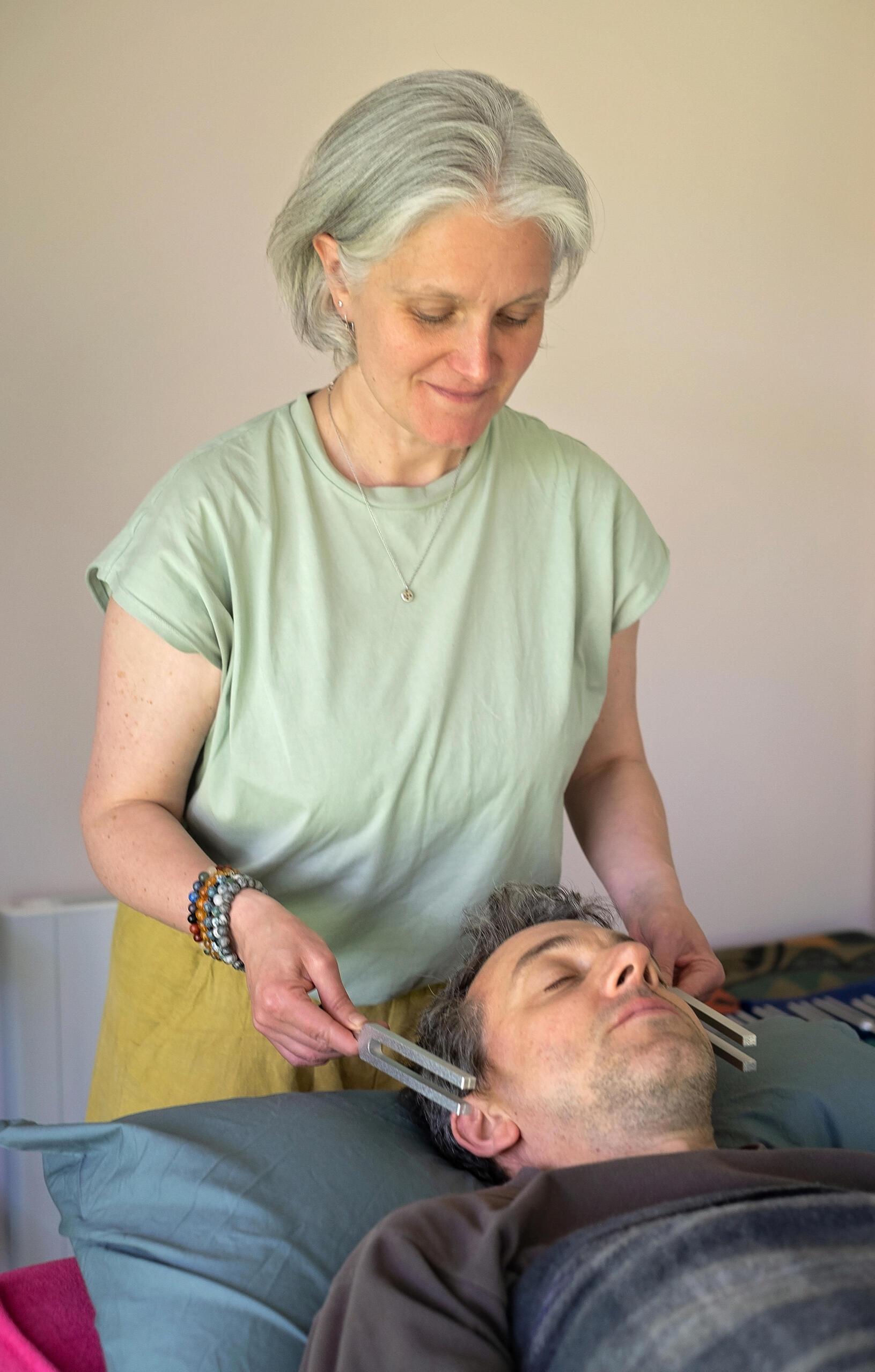 My studio is a calm and cosy space, in which I invite you to lie or sit comfortably, while I assess your energy fields. I will then bring you to a place of balance through visualisation and relaxation, moving through the body and biofield using frequency and intention in order to release any blocked energy. These blockages can be experienced on a physical level but may also appear emotionally, mentally or spiritually. As your energy begins to flow freely, your body will be able to naturally heal itself. I will use instruments both on and off the body depending upon the wishes of the client.I use a variety of instruments including Tibetan singing bowls, tuning forks, gongs, drums, chimes, rattles, shakers and voice.I encourage you to join me in a journey of healing over the course of several weeks or months into a place of health, mindfulness and holistic well-being.Sessions last between 75 to 90 minutes.Prices: